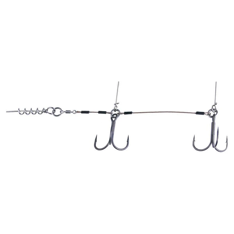 Das BKK Stinger Rig ist ein Stinger für Hecht-Softbaits, der mit einem hochwertigen 49-litzigen AFW-Edelstahldraht mit einer Bruchfestigkeit von 40 kg gebunden ist.Der Stinger ist mit rasiermesserscharfen BKK-Dreifachhaken ausgestattet, die mit einer Teflonbeschichtung versehen wurden. Außerdem ist er mit Stinger-Spikes und einer flachen Schraube ausgestattet. Die flache Schraube kann entfernt werden, wenn Sie den Stinger zusammen mit einem Jigkopf verwenden möchten.“Unglaublich schöne Stinger, die wir wärmstens empfehlen können! Kommt mit einem kompletten Stinger pro Paket.