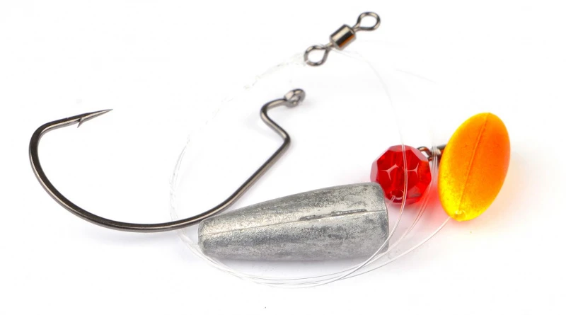 Vorgefertigtes Tackle mit Floater Ball zum Fischen mit Carolina Rigs, der Floater Ball hält den Köder in der Schwebe, eine sehr effektive Methode, wenn der Fisch nicht beißt.• 10g Platine• 3/0 Offset Haken• Fluorocarbon• Bead• Floater Ball