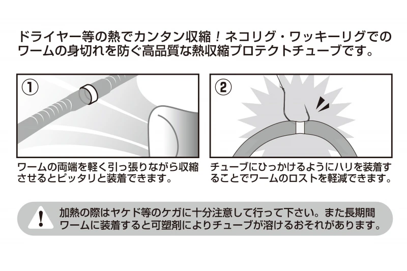 Transluzenter Schrumpfschlauch zum Befestigen von Wiggle Rigged Jigs. Leicht zu erhitzen, um einen guten Halt um den Hakenschaft zu bekommen. Erhältlich in mehreren Abmessungen und einer größeren Auswahl an gemischten Größen.Größen: 4mm, 6mm, 8mm und gemischte Größen im “Assortment“
