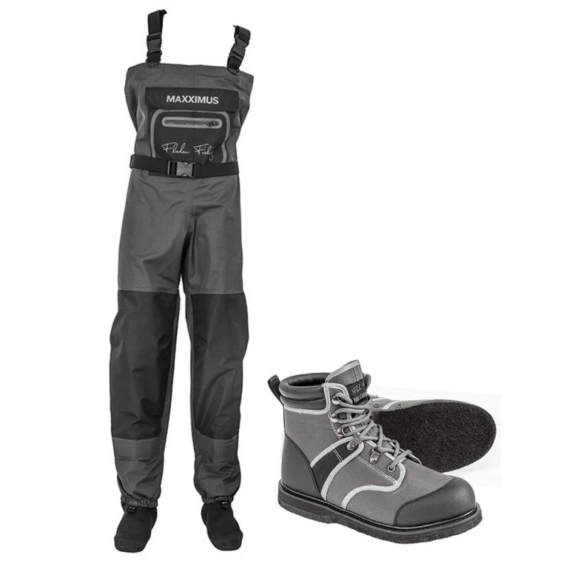 Wathosen – Fladen Maxximus Breathable Stocking Foot WadersSchöne Wathose, die atmet und sorgfältig durchdachte Details nur zum Fischen hat. Die Neoprensocken ermöglichen die Verwendung von beliebigen Watschuhen. Verstellbare Hosenträger und Gürtel. Brusttasche für Zubehör. Stilvolle schwarz-graue Farbe, die nie aus der Mode kommt und die zu jeder Angeljacke passt, die Sie wollen. Das Material sorgt dafür, dass Sie sich auf dem Angeltrip noch länger wohlfühlen.Schuhe – Fladen Maxximus Wading BootDer Fladen Maxximus Wading Boot ist ein schöner und günstiger Watstiefel von Fladen mit Filzsohle. Watschuhe mit Filzsohle, die guten Halt auf nassen Felsen bietet. Qualitätsschuhe für einen guten Preis!