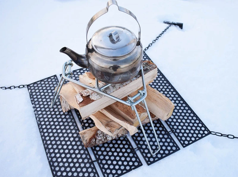 Ein praktischer Ständer, auf dem Sie Ihre Kaffeekanne, Bratpfanne oder etwas anderes leicht abstellen können, wenn Sie draußen sind und etwas Leckeres über dem offenen Feuer kochen. Unabhängig von der Oberfläche erhalten Sie leicht eine ebene Fläche zum Aufstellen dessen, was Sie erhitzen.Abmessungen: 18 x 18 x 18 cm