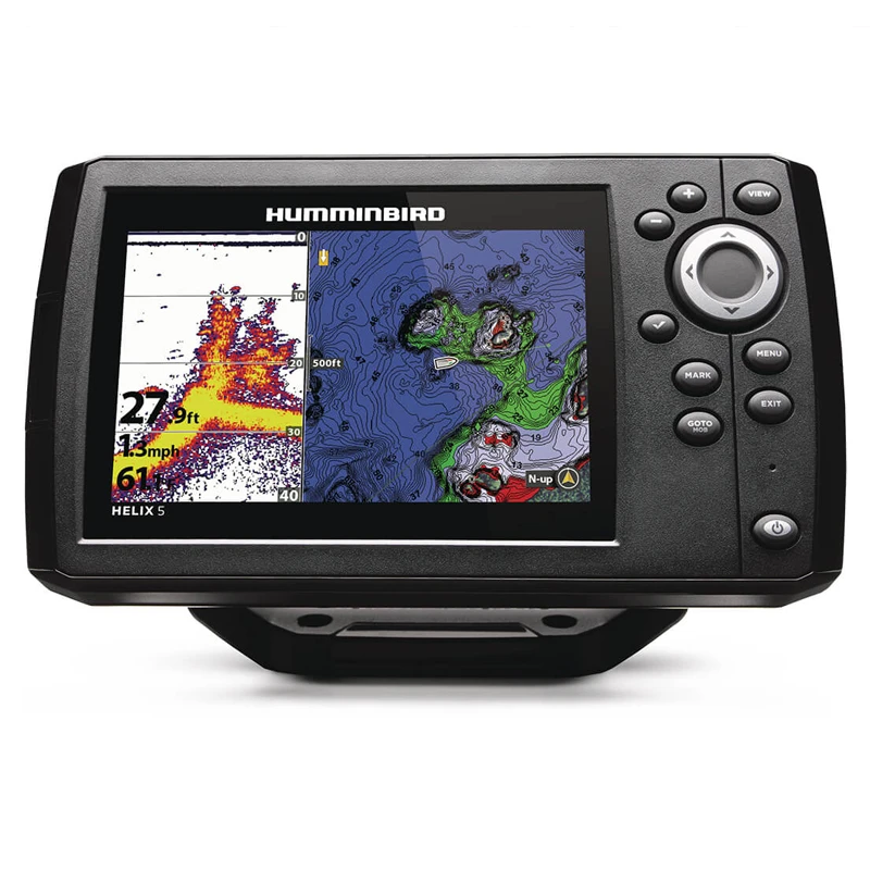 HELIX 5 CHIRP GPS G3 mit 5“ Display mit 1000 nits und Dual Spectrum CHIRP Sonar. Ausgestattet mit Navionics Kartenplotter und AutoChart Live zur Erstellung eigener Echtzeit-Karten mit Tiefe, Bodenrauhigkeit und Bewuchs.Zweifach-Spektrum CHIRPDas Dual Spectrum CHIRP, auch bekannt als High Wide (HW), ist die neueste Entwicklung im Bereich der fortschrittlichen 2D-Sonare. Die neuen breitbandigen Elemente in den Dual Spectrum-Schwingern haben einen sehr niedrigen Q-Wert und liefern detaillierte 2D-Bilder mit einer unglaublichen Trennung. In Kombination mit neuen Algorithmen und verfeinerter Technologie ist das Ergebnis unvergleichlich.AutoChart LiveErstellen Sie mit AutoChart Live Ihre eigenen Echtzeit-Karten von Tiefe, Bodenhärte und Bewuchs. Das Gerät verfügt über einen integrierten 8-Stunden-Aufzeichnungsspeicher. Wenn Sie diesen Speicher erweitern möchten, sind AutoChart ZeroLine-Karten als Zubehör erhältlich (siehe unten). Die Karte bietet weit über 2000 Stunden Kartenmaterial.Navionics-KartenVorbereitet für Navionics-Kartografie und unterstützt Navionics Small, Navionics+, Platinum+ und Navionics Update-Karten.SpezifikationenAnzeige: 5“ 800×480 HD 16:9 TFT Farbe 1000nitGPS-Antenne: Internes Präzisions-GPS mit 10 HzKartenmaterial (Micro SD)Navionics Nav+ und Platinum+ (optional)Humminbird AutoChart (wahlweise)Humminbird AutoChart Live (serienmäßig)SpeicherkapazitätRouten – 47Wegpunkte – 2500Tracks – 50 Stück /20000 mrk in jedemSpannungsversorgungSpannung 10-20VDCStromverbrauch 0,615ASonar-DatenTyp: CHIRP Digital-Echolot DSP / Dual Spectrum CHIRPLeistung: 4000W (PTP) 500W (RMS), (für volle Leistung ist ein 1kW-Schwinger erforderlich)Frequenz und Bereich mit mitgeliefertem Schwinger:Zweifach-Spektrum CHIRPVoller Modus: 150-220 kHzSchmaler Modus: 180-240 kHz @ 25°Breiter Modus: 140-200 kHz @ 42°Tiefe: 365 mIm Paket enthalten:Helix 5 G3 CHIRP GPSXNT 9 HW T HecksensorStromkabel PC10KlemmeKlemmeEnglisch Handbuch