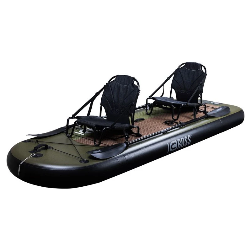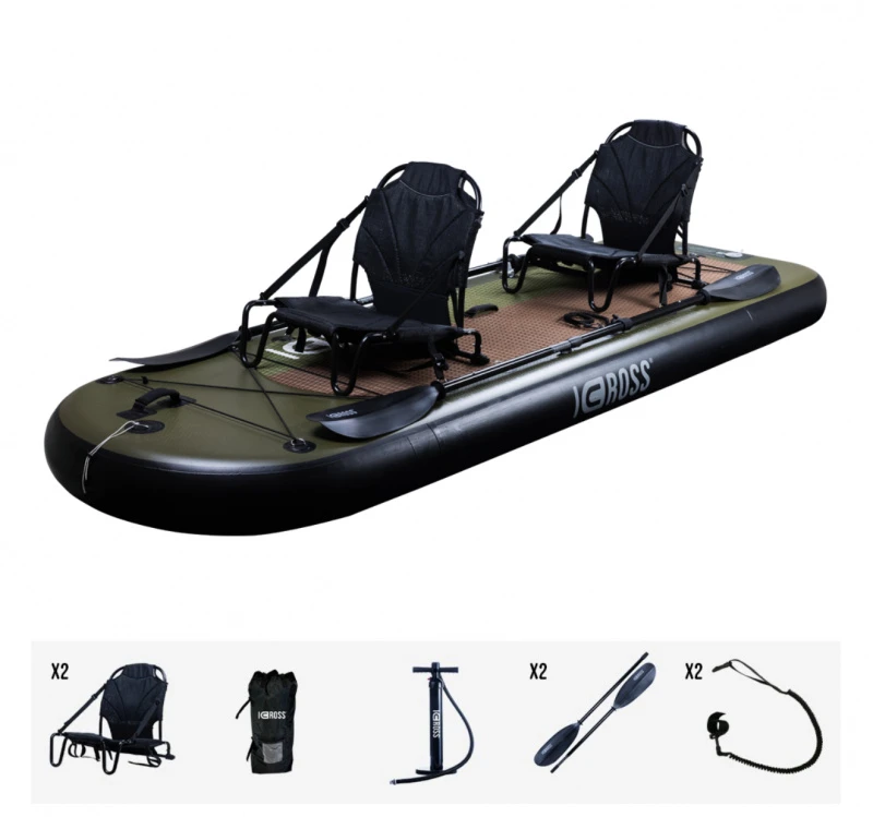 Das ICROSS® 3000 misst 300x95x20 cm, (118x37x8 inch). Im Lieferumfang enthalten sind ein Maßband zum Messen des Fangs und zwei Halterungen zur Befestigung eines Paddels. Rutschfestes EVA. Ein hochwertiger Tragegurt. Viele D-Ringe zur Befestigung von 2 Kajakstühlen und mehr. Zwei kleine Bungee-Stauräume zum Befestigen von Gegenständen wie Trockensäcken. Das ICROSS® 3000 ist das größte Modell der Reihe. Dies ermöglicht es dem Paddler, auch bequem zu stehen. Das ICROSS® 3000 ist das größte Modell der Reihe und bietet Platz für 2 Personen.Kapazität: 300 kg (660 lbs) | Gewicht 13 kg (28 lbs) | Grün/BraunICROSS® 3000 wird außerdem mit einer leistungsstarken, doppeltwirkenden Pumpe, einer abnehmbaren Flosse und einem Reparaturset für den Fall eines Unfalls geliefert.ICROSS 3000 Paket enthält:- ICROSS 3000- 2 x Aluminiumstuhl mit Rutenhalter- 2 x 4-teiliges Kajak-Paddel- ICROSS Tragetasche- 2 x Paddel-Leine- Sicherheitsleine- Doppeltwirkende Pumpe- Abnehmbare Flosse- Reparaturset