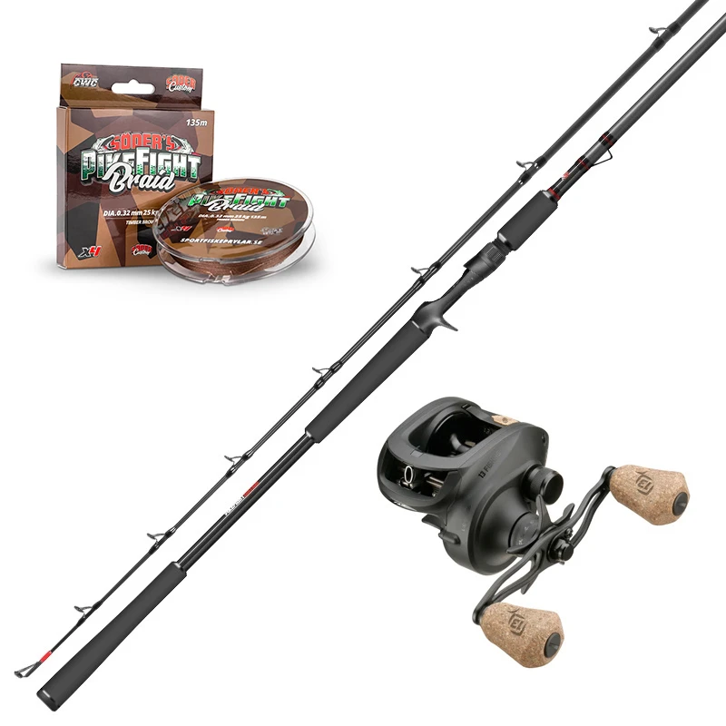 Pike Fight V2 110g:Eine Rutenserie der Spitzenklasse mit Titanium-Ringen, japanischen 40T Toray Carbon Blanks mit 1k Carbon-Verstärkung. Dies sind erstaunliche Ruten für das Hechtfischen, schwere schnelle Aktion, die die Blanks zu laden und geben Ihnen lange und präzise Würfe! Ti Forged Guides, Rollenhalter von American Tackle und geteilter EVA-Griff.Ti-Forged Guides:Korrosionsschützendes Rahmenmaterial, gehärtete Rahmen für extreme Festigkeit, Anti-Tangle Snagless Frame Design, Nanolite oder Duralite braid-proof Ringe, Slim Profile Ringe reduzieren das Gewicht und sorgen für mehr Wurfweite und längere Schnurlaufzeit.PikeFight V2 Casting 8’6“ 110g•Länge: 8’6“•Länge hinterer Griff (ab Rollenhalter): 43cm•Wurfgewicht (bis): 110g•Teile: 2 Stück•Gewicht: 199g• Aktion: Heavy FastConcept A3 BC 300:Die 13 Fishing Concept A3 Gen 2 sind tief gespulte, hochbelastbare Casting-Rollen mit niedrigem Profil. Die Concept A3 Generation 2 wurde mit dem Fokus auf Leistung und Haltbarkeit entwickelt, um Ihnen zu helfen, Trophäenfische mit großen Ködern zu fangen.Die neue Generation der Concept A3 Rollen hat einen HD-Aluminiumrahmen mit Ocean Armor 2 Behandlungsprozess für extreme Korrosionsbeständigkeit, so dass Salzwasser- und Flussmündungsangler sicher sein können, dass die Rolle dem Missbrauch durch Salz standhält.Ein wahres Meisterwerk und etwas, mit dem wir nicht widerstehen konnten, unsere Pike Fight V2 zu kombinieren, nachdem wir sie zum ersten Mal zusammen ausprobiert hatten. Sie passen extrem gut zusammen und wir versprechen, dass Sie mit diesem Setup nicht enttäuscht werden!Schnur:Die Dicke der Schnur ist abhängig und variiert je nach Situation. Wir listen unten Vor- und Nachteile auf:Tracer Braid 0,28mm: Perfekt, wenn Sie längere Würfe und besseren Kontakt mit Ihren Ködern suchen, da die Schnur effizienter durch das Wasser schneidet. Kann bei abrupten Stopps dazu führen, dass die Schnur abreißt, z.B. wenn Sie den berüchtigten „Profiüberlauf“ bekommen und sich mitten im Wurf verheddern.Tracer Braid 0,35mm: ‚Die häufigste Wahl, wenn es um schwerere Hechtfischerei geht. Sie bietet eine etwas geringere Wurfweite als 0,28mm, spart Ihnen aber aufgrund ihrer hohen Festigkeit und Haltbarkeit wahrscheinlich einige hart verdiente Köder und Vorfächer.Tracer Braid 0,40mmNicht die häufigste Wahl unter Hechtanglern, aber definitiv erwähnenswert. Wenn wir in Gebieten mit vielen Baumstämmen, großen Felsen oder anderen Hölzern angeln, verwenden wir lieber eine dickere Schnur als normal. Manchmal lohnt es sich einfach, die Haken zu begradigen, um die Köder zu retten, anstatt sie zu verlieren.Söder PikeFight Braid X4 135m, Timber BrownOur own PikeFight line inspired by Strike Wire X4. An ideal braided line for Pike fishing!In the colour Timber Brown and manufactured by 4 braided threads for max strengt and durability vi have our own favourite line for pike fishing. Suit casting and spinning reel and a line to trust on in every situation. Strength:0,28 mm / 20kg0,32 mm / 25kg0,36 mm / 30kg