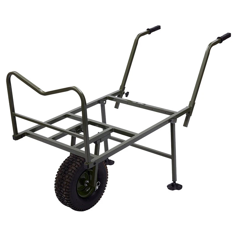 Diese robuste Schubkarre kann in Verbindung mit einem Bedchair verwendet werden, wobei ihre Beine dabei als Seitengitter dienen. Dies ermöglicht eine viel kleinere und leichtere Transportgröße, die schneller und einfacher aufzubauen ist. Das Vorderrad wurde speziell so positioniert, um das Gleichgewicht perfekt zu optimieren und sicherzustellen, dass die Ausrüstung gleichmäßig über die Schubkarre verteilt ist. Die flache, faltbare Vorderschiene hält das Gepäck während des Transportes sicher an Ort und Stelle. Die Griffhöhe lässt sich individuell so einstellen, dass die Schubkarre sich mit ausgestreckten Armen manövrieren lässt, was für mehr Kontrolle sorgt und zu weniger Ermüdung führt! Dank des geländegängigen Big Boy-Luftreifens, mit dem selbst das schwierigste Gelände problemlos bewältigt werden kann, ist es ein Kinderspiel, selbst mit einer voll beladenen Schubkarre sicher und leicht zum Angelplatz zu gelangen. Ihre großen Ausmaße erlauben eine bessere Gewichtsverteilung, um auch auf weichem Grund sicher zu rangieren. Die verstärkte 2-fach-Konstruktion bietet exzellenten Halt und verhindert zu viel Luftwiderstand. Beim Testen hat der Big Boy alles übertroffen, was wir jemals in der Praxis am Wasser benutzt haben.