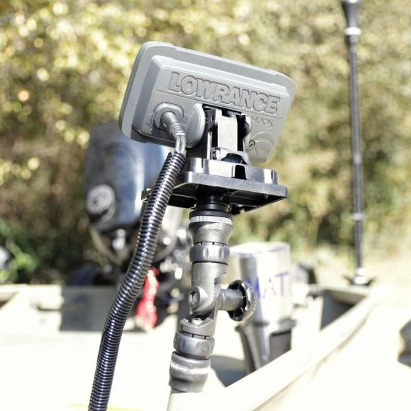 This 3 axis mount has friction joints top and bottom featuring R-Lock lockable joints (pat pending). The centre joint is fully adjustable in 15-degree increments. Will take fish finders up to 1.5kgs (3.3 lb). Mount on an angled surfaces and have your display level!Also with the correct Railblaza mount, you can mount your fish finder on a rail, or inflatable tube!Fits most fish finder brands, including:- Lowrance Hook2, Lowrance Elite- Garmin Striker Plus, Garmin Echomap- Humminbird PiranhaMAX- Raymarine DragonflyUse the Railblaza Fish Finder Mount R-Lock S with any Railblaza StarPort