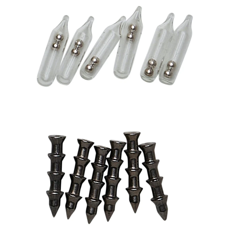 Jeweils 6 Stück sind im Lieferumfang enthalten.’Ä¢ 6 Stück Glasrasseln Größe M’Ä¢ 6 Stück Tungsten-Spikes 1,8g