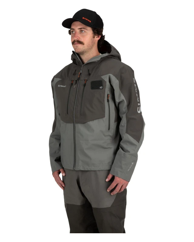 Durable, breathable, and comfortable GORE-TEX® Shell 3-layer through the body with GORE-TEX® stretch panels strategically placed to move with every dynamic cast. The fabric feels tough to protect from the rain and durable to hold up to any weather mother nature tosses at you3-point adjustable storm hood with high vis center hood panelRight chest pocket contains a retractor docking station that can be worn on the exterior when changing flies then stashed away when not in use to reduce potential for line catchLeft chest pocket has loop front patch to store flies and contains a tethered, removable lens clothZippered stretch-woven pocket on interior of wearer’s left chest and dump mesh pocket on interior of wearer’s right chestLower Front and Back Body – 3-layer GORE-TEX – 70D 100% nylon with DWR/100% nylon tricot backerSide Hood, Upper back, Shoulders, Upper Sleeves, Chest Pockets and Under Arm Panels – 3-layer GORE-TEX40D 100% nylon with mechanical stretch and DWR/100% nylon tricot backer.