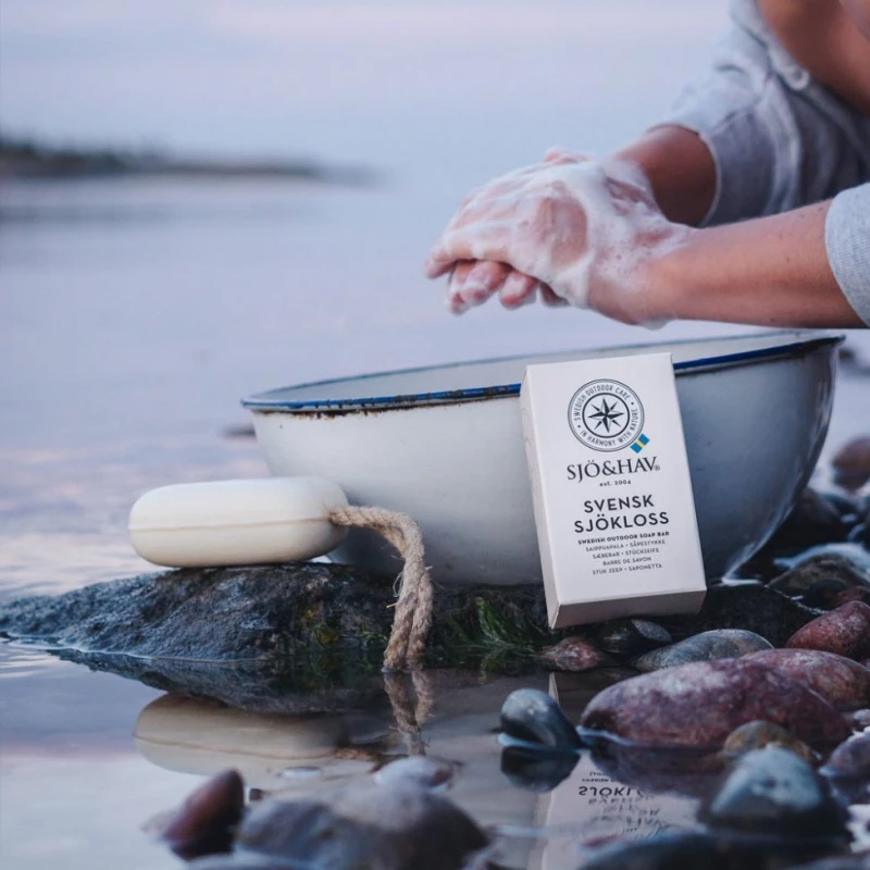 The soap is biodegradable, vegan and free of preservatives and palm oil. The soap is suitable for all types of outdoor use. In the boat, sauna or in the summer cottage’s outdoor shower. Are you going on a hike and need to minimize weight? Plane off some soap shavings and keep them in a practical jar. You secure the soap around your wrist with the rope of natural hemp and hang up to dry after use.Ingredients: Sodium Cocoate, Aqua, Parfum, Decyl Glucoside, Glycerin, Sodium Chloride, Cocamidopropyl Betaine, Brassica Campestris Seed Oil, Sodium Citrate