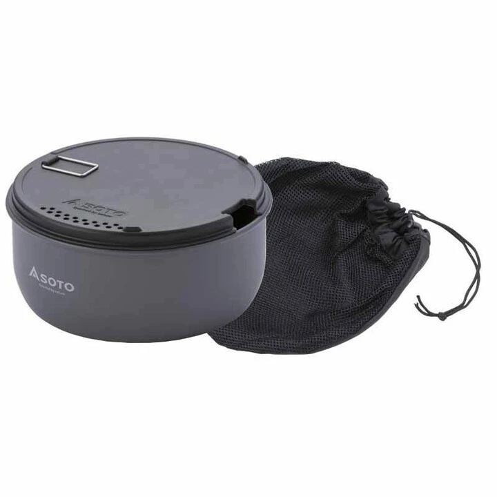 Das ultraharte, eloxierte Aluminium-Kochgeschirrsystem zeichnet sich durch hohe Stoßfestigkeit, Verschleißfestigkeit und Korrosionsbeständigkeit im Vergleich zu herkömmlichen, schwefeleloxierten Töpfen aus. Navi Duo Handle mit einer inneren Feder hält die Griffe offen, so dass sie als Zange fungieren können.