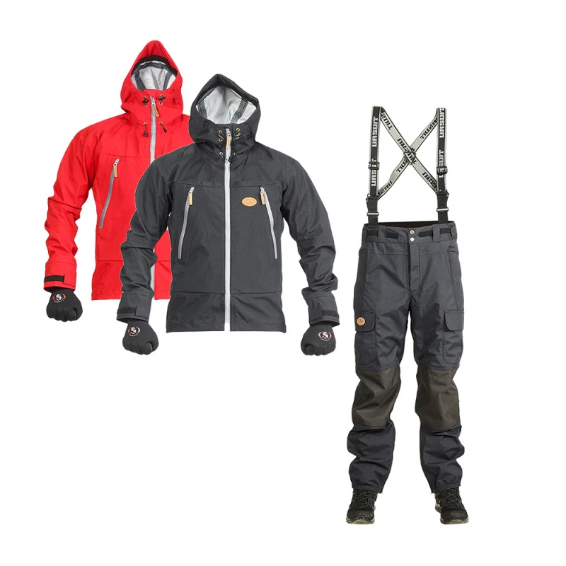Benannt nach dem Leuchtturm, der hoch und mächtig im Meer von Åland steht, hergestellt aus dampfdurchlässigem und wasserdichtem Ursuit 4-Tex-Gewebe.JackeDie Jacke und die Hose sind so konzipiert, dass sie beste Bewegungsfreiheit und Komfort in jeder Situation bieten.Die Hose hat eine zusätzliche Schicht aus schützendem Material an Schritt und Knien, um die Lebensdauer zu verlängern. Die Hosenträger sind so konzipiert, dass Sie die Hose abnehmen können, ohne die Jacke ausziehen zu müssen. Die Hose hat vier Taschen. Zwei der Taschen befinden sich weiter oben und sind mit spritzwassergeschützten Reißverschlüssen ausgestattet. Die beiden anderen Taschen befinden sich weiter unten auf den Oberschenkeln und können mit einer Patte verschlossen werden.Die Hose hat am Ende des Beins ein Zugband, um das Anziehen an den Stiefelschaft zu ermöglichen.Der Taillenteil ist höher als normal, um einen besseren Schutz gegen Wind zu bieten. Der Taillenbereich hat ein Fleece-Futter, um zusätzlichen Komfort zu bieten.• Wasserdichtigkeitsklasse: 25000HoseDie Jacke ist so konzipiert, dass sie in jeder Situation die beste Bewegungsfreiheit und den besten Komfort bietet.Die Jacke hat eine große angesetzte Kapuze, die Ihnen die Möglichkeit gibt, einen Hut oder eine Mütze darunter zu tragen. Die Kapuze kann so eingestellt werden, dass sie perfekt passt. Die Taschen der Jacke sind groß und haben spritzwassergeschützte Reißverschlüsse. Die Jacke ist außerdem mit zwei angebrachten D-Ringen ausgestattet, einer im Nacken und einer unten auf der Rückseite. Der D-Ring im Nacken kann zum Aufhängen des Netzes verwendet werden und der andere kann zum Aufhängen anderer Ausrüstung verwendet werden.• Wasserdichtigkeitsgrad: 25000